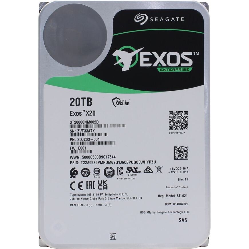 Жесткий диск Seagate Exos X20 ST20000NM002D, 20TB, 3.5", 7200 RPM, SAS 12Gb/s, 512e/4Kn, 256MB