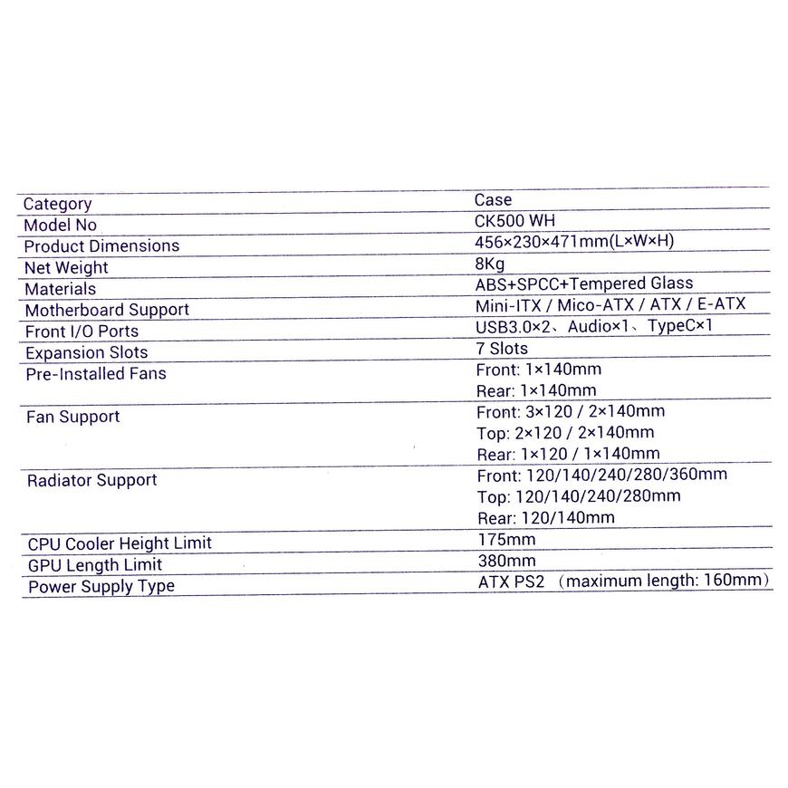 | Модель | CK500 WH |