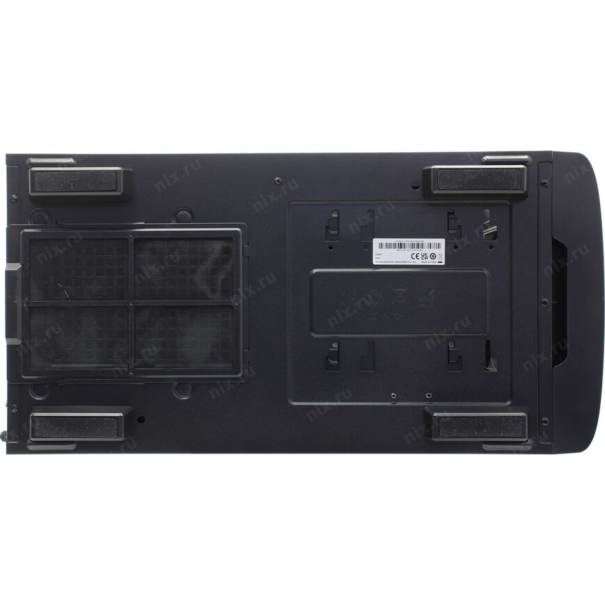 Снизу, с забором воздуха через фильтр снаружи корпуса, что обеспечивает лучшее охлаждение в системе и малошумность.