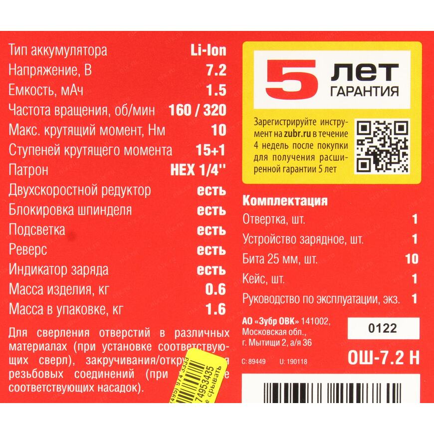 | Модель | ОШ-7.2 Н отвертка-шуруповерт аккумуляторная 7.2 В, в кейсе с 10 битами |