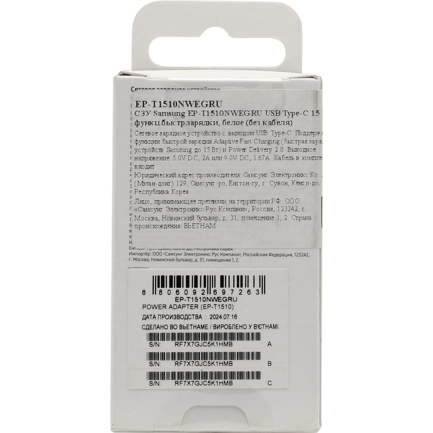 Быстрое сетевое зарядное устройство с поддержкой технологии Samsung Adaptive Fast Charging (AFC) с USB Type C разъемом