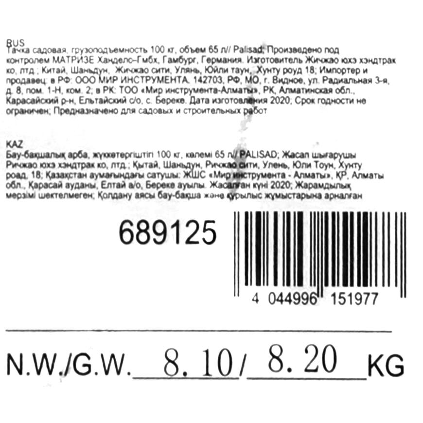 Тележка садовая PALISAD PL-689125
