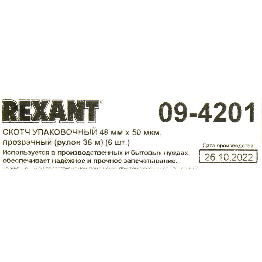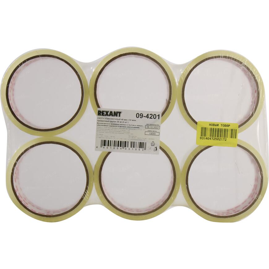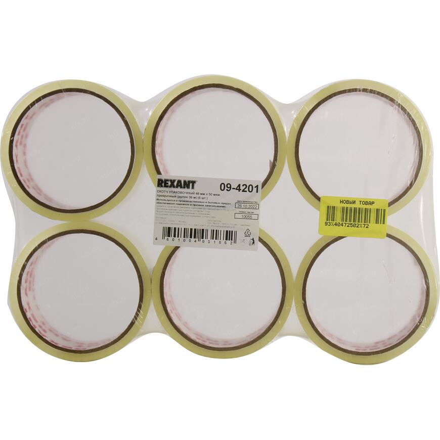 Клейкая лента (скотч) Rexant (09-4201) Скотч, прозрачный 48мм*36м*50мкм (6)