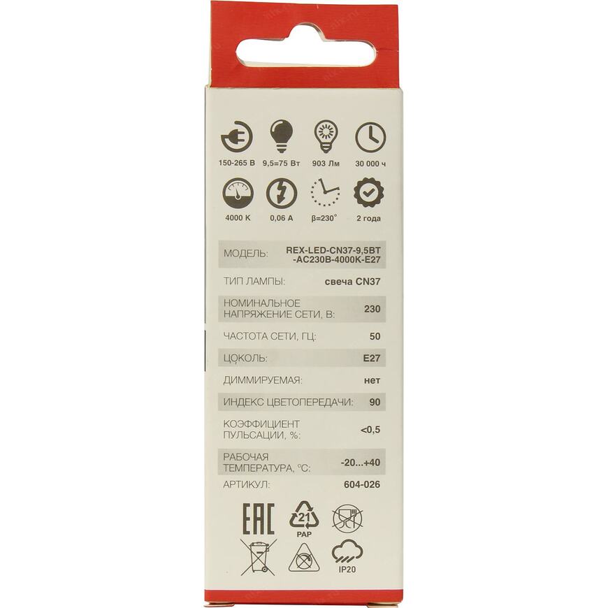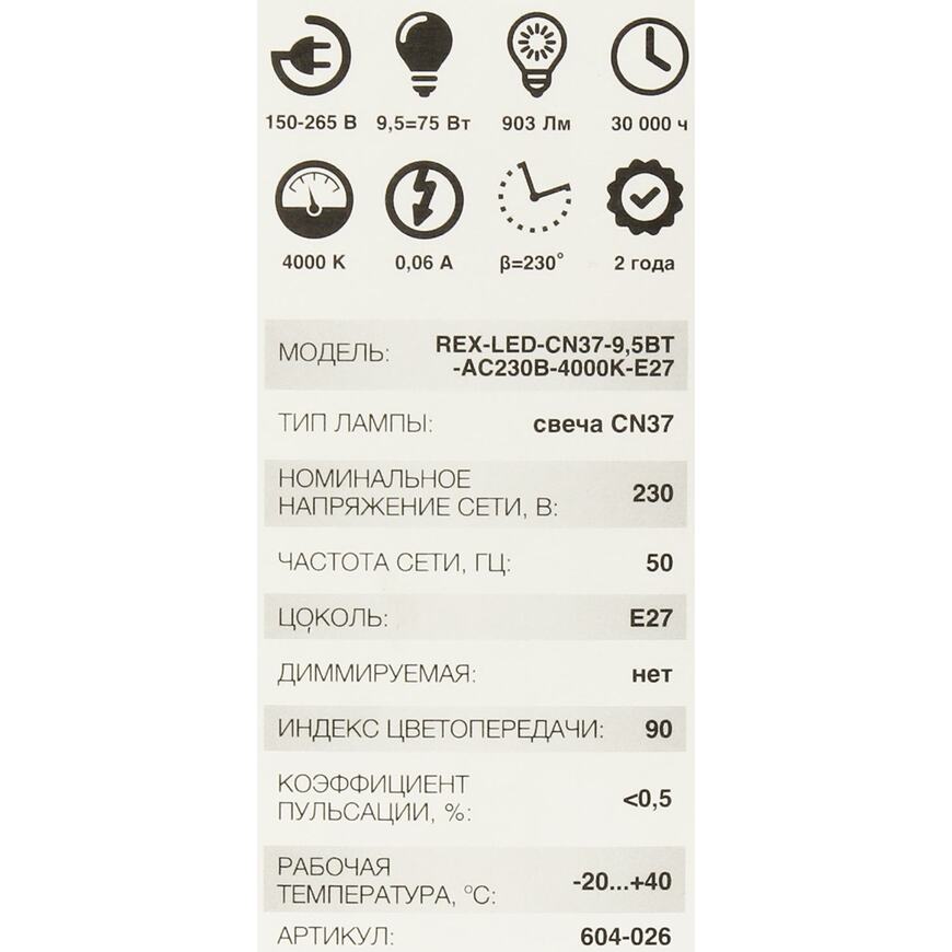 | Описание | Светодиодная лампа в форме свечи применяется для освещения бытовых и офисных помещений. Цоколь - Е27. Расход потребляемой энергии такой лампы довольно экономичен в сравнении с другими видами ламп. Устройство излучает нейтральный свет, который комфортен как для работы, так и для отдыха. Лампа мощностью 9,5Вт обеспечивает надежную и стабильную работу в течение всего срока службы (30 часов). Электромагнитная совместимость, низкая пульсация, высокая цветопередача - все это совмещает в себе светодиодная лампа Свеча REXANT. |