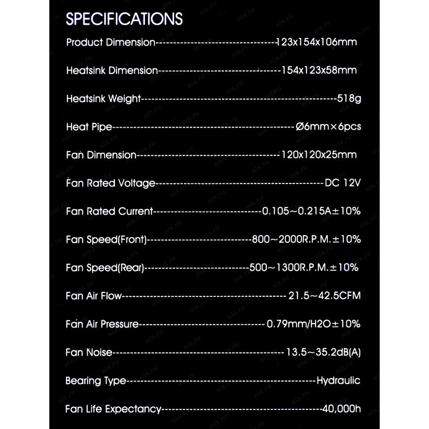 | Совместимость охлаждения | Socket LGA1366, Socket LGA1200, Socket LGA1151, Socket LGA1150, Socket LGA1155, Socket LGA1156, Socket AM4, Socket FM2 plus, Socket FM2, Socket FM1, Socket AM3 plus, Socket AM3, Socket AM2 plus, Socket AM2 |