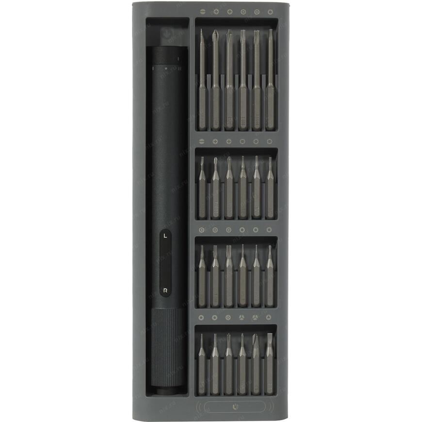| Описание | Отвертка для точных работ с Li-Ion аккумулятором, реверсом MJDDLSD003QW с набором бит и головок под шлицы Phillips, TORX, а также шестигранные, и прямые шлицы разных размеров, подходящих для любых видов работ (всего 24 биты). Момент затяжки - 3 Нм. Есть возможность выбрать момент 0.2 нм и 0.05 нм для электроники. Есть 6 удлиненных бит длиной 45 мм. Остальные биты длиной 28 мм Алюминиевый кейс для хранения |