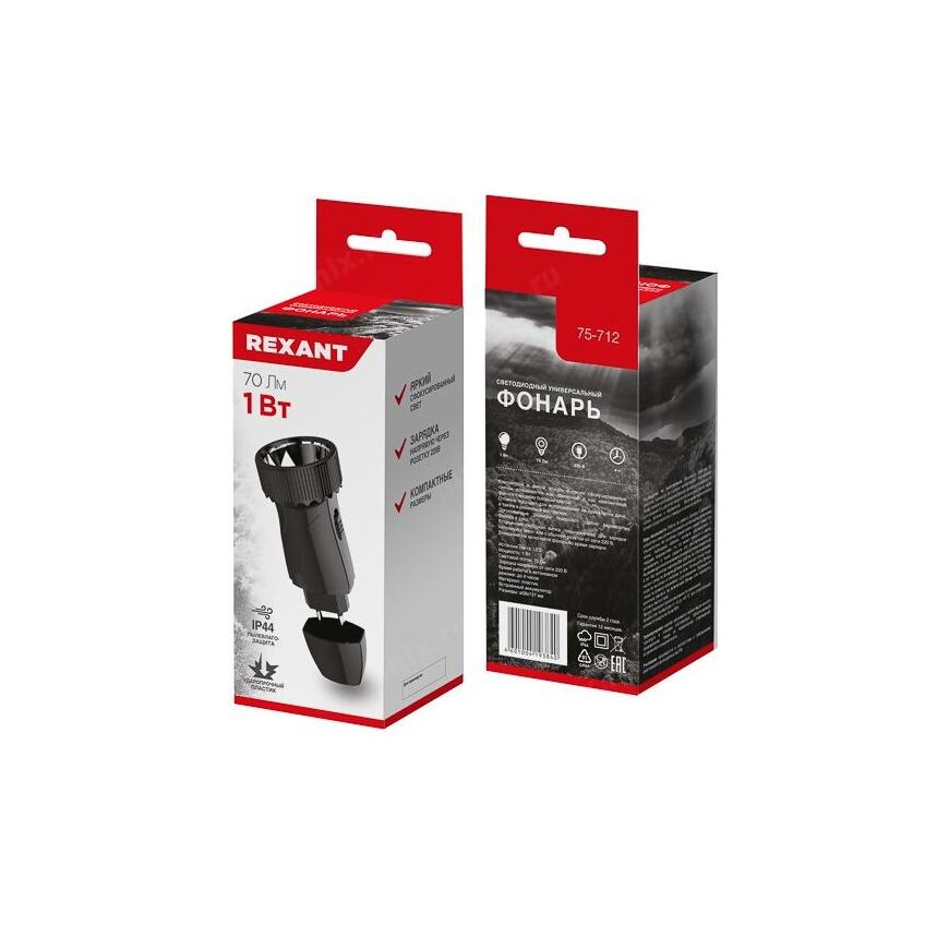 [фонари] Rexant 75-712 Фонарь с аккумулятором и встроенным зарядным устройством, зарядка напрямую от сети (евророзетка) 220 В