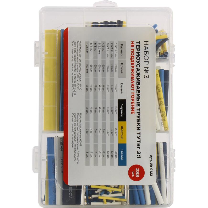 | Описание | Термоусадочные трубки разных диаметров. В комплекте 288 штук. Также называются кембрик (кембрики). |