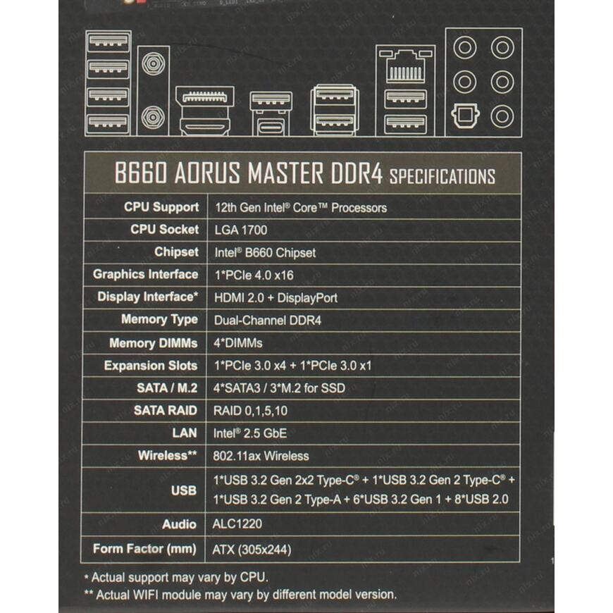 | Модель | B660 AORUS MASTER DDR4 (rev. 1.0) |