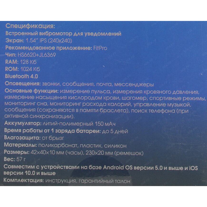 | Описание | Умные часы с цветным IPS экраном оснащены функцией вибрации для уведомлений, входящих вызовов и будильника для совместной работы со смартфоном или планшетом по Bluetooth. С помощью часов можно измерять шаги и пройденные километры, получать уведомления вибрацией, измерять пульс и уровень кислорода в крови, следить за качеством сна, кровяным давлением, пользоваться будильником, управлять воспроизведением музыки. Фитнес-часы защищёны от пыли и воды по стандаврту IP-65 |