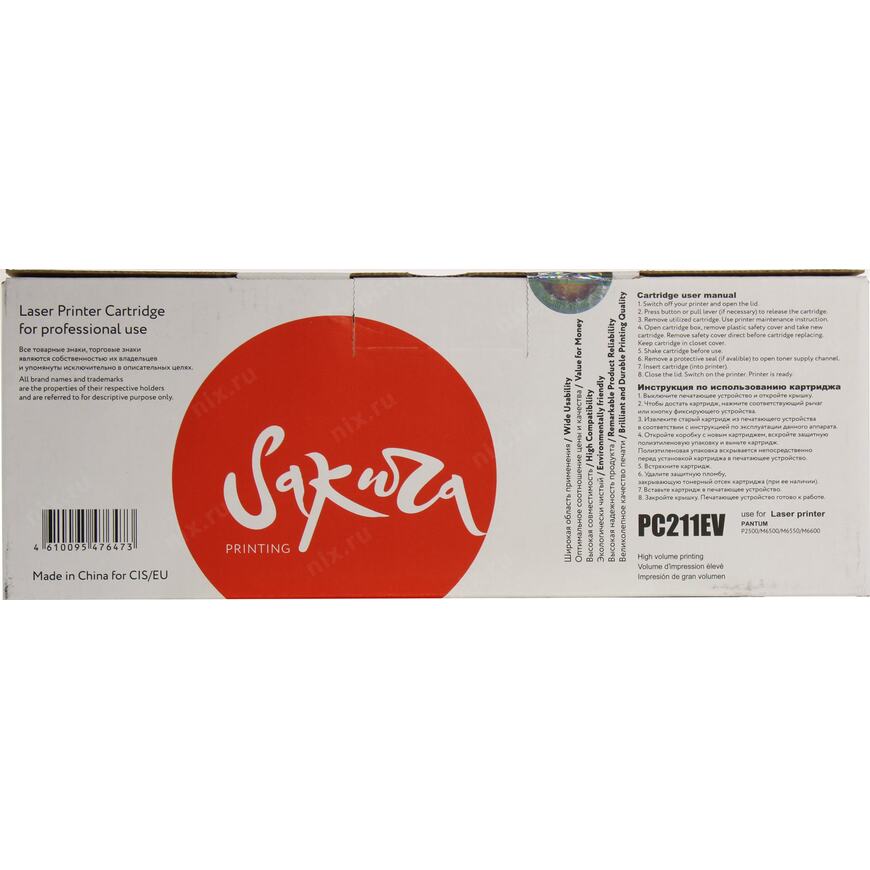 Картридж Sakura PC211EV для Pantum PP2500M6500/M6600, черный, 1600 к.