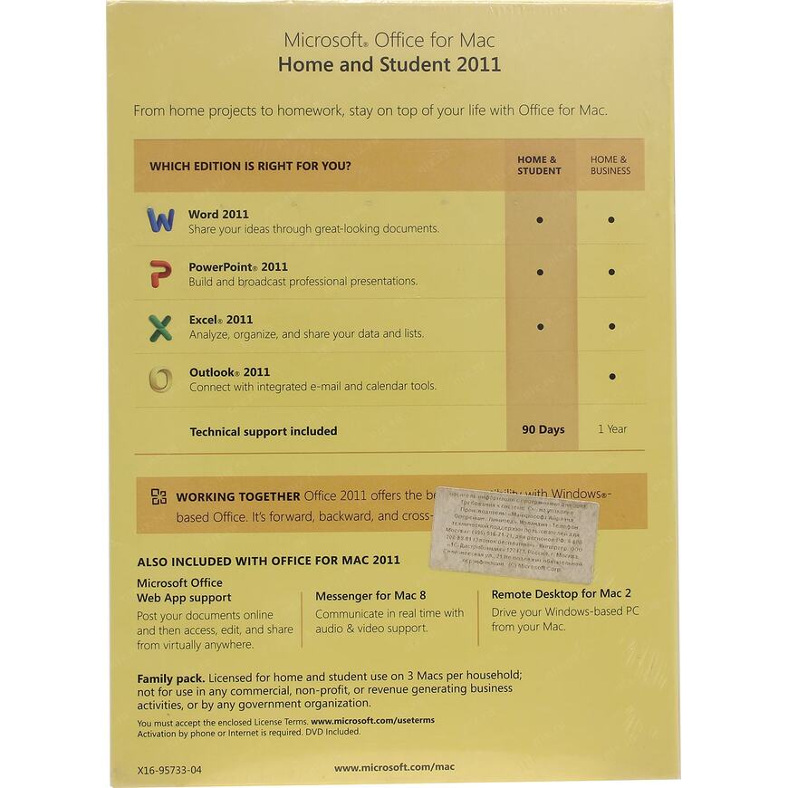| Комплект поставки | Word 2011, PowerPoint 2011, Excel 2011 |