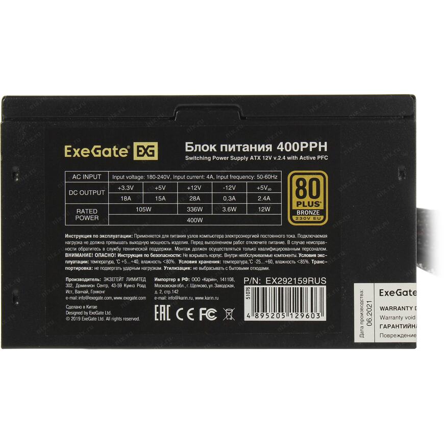 КПД до 88%, подтвержденное сертификатами 80 Plus Bronze. Поддержка международных стандартов питания ATX 12V V2.4 и EPS 12V. Активный PFC> 99%. Одиночная +12V линия обеспечивает максимальную стабильность при любых уровнях нагрузки. Блок питания для промышленного использования.