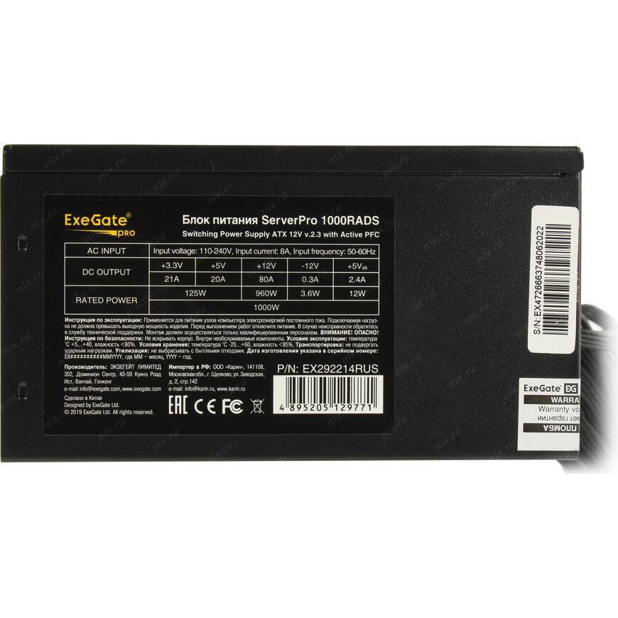 | Мощность блока питания |
