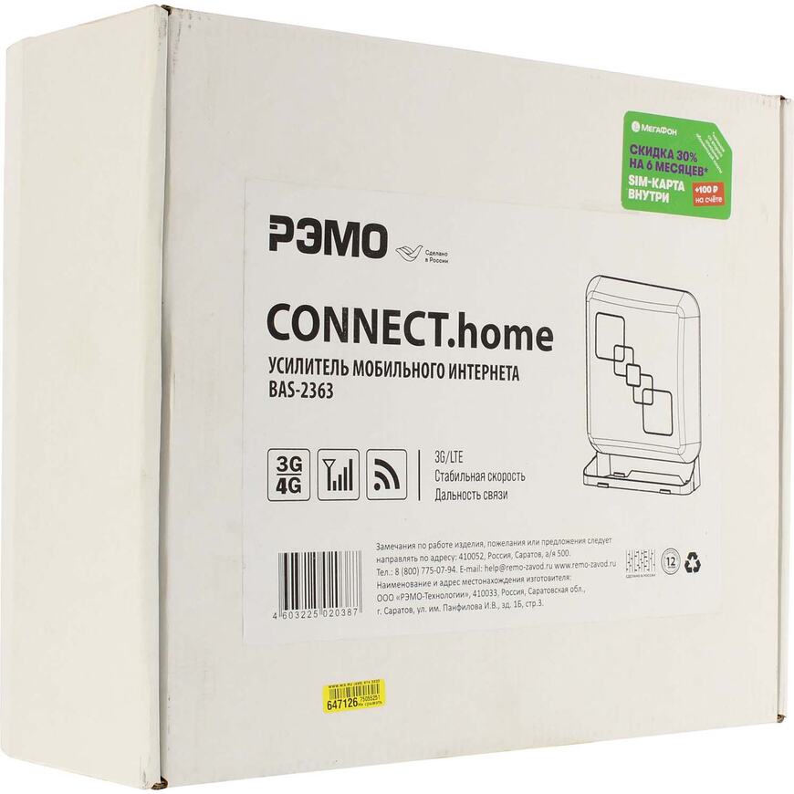 | Описание | Усилитель мобильного интернета Connect Home является антенной с установленным роутером ZTE WIFIRE MF79RU. Антенна подключается к внешним антенным разъемам роутера, благодаря чему получается ловить мобильный интернет значительно лучше, чем на встроенные антенны роутера, а также позволяет раздавать интернет по WiFi. BAS-2363 отлично усиливает слабый сигнал мобильного интернета в зонах неуверенного покрытия сети, а также позволяет подключаться к нему по WiFi с нскольких устройств одновременно. Корпус усилителя выполнен из прочного полимера и металла, имеет простую и надежную конструкцию. |