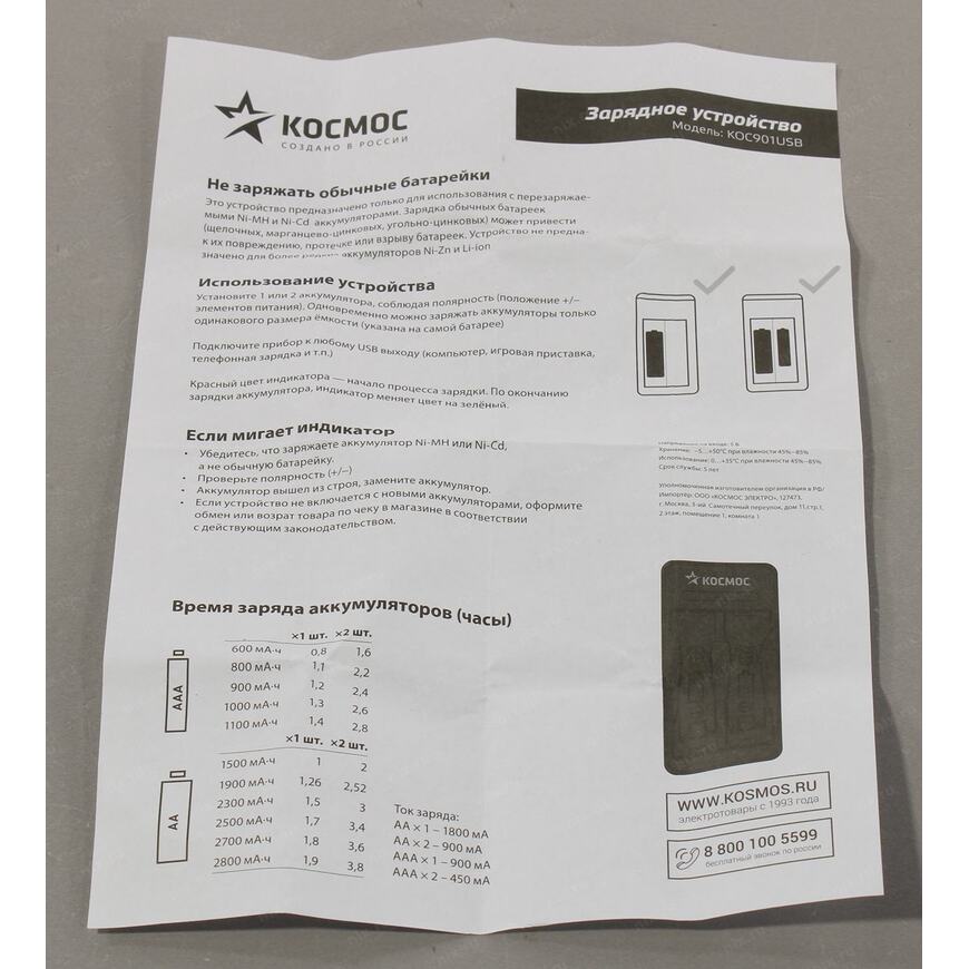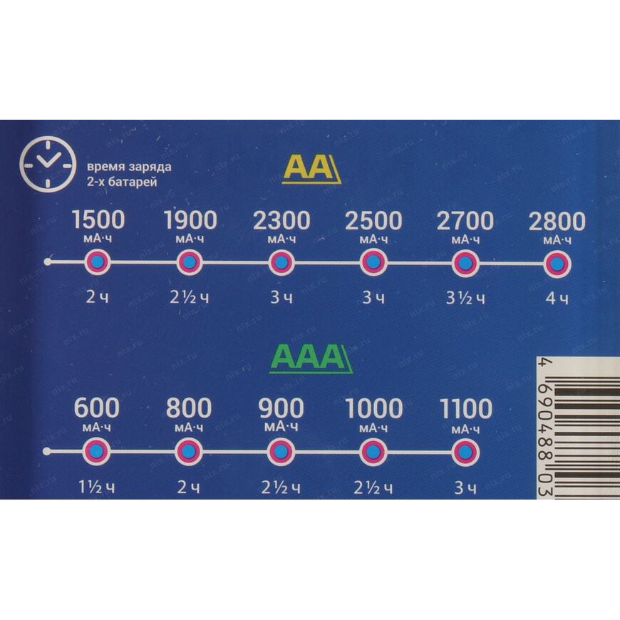 | Кол-во одновременно заряжаемых аккумуляторов | 1+1 аккумулятора размера АА или ААА |