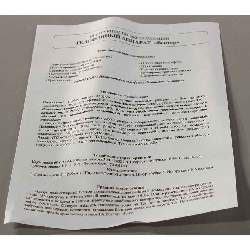 | Тип оборудования | Проводной телефон |