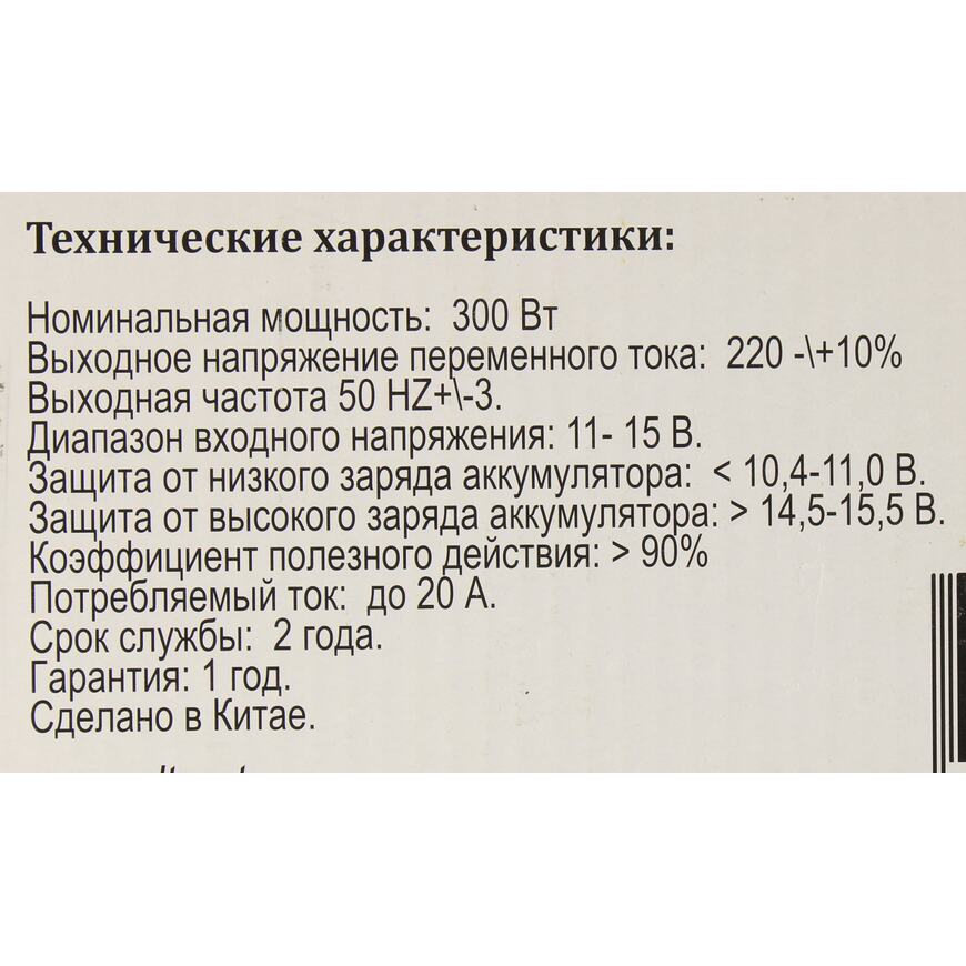 | Комплект поставки | Предохранитель, кабель питания от автомобильного аккумулятора |