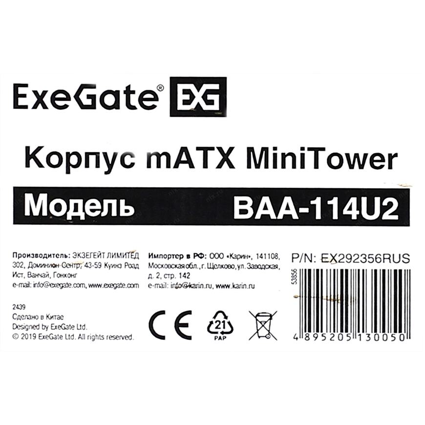 ExeGate BAA-114U2 Black имеет один внешний отсек 5.25%quot; для установки оптического привода или другого внешнего устройства. Также в корпусе есть три внутренних отсека 2.5%quot; и два внутренних отсека 3.5%quot;, что обеспечивает достаточно места для установки жестких дисков и SSD.
