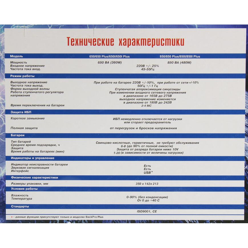 POWERMAN Back Pro 850I Plus (IEC320) - линейно-интерактивный ИБП мощностью 850ВА. Обеспечит надежную защиту ПК, рабочей станции, небольшого сервера, коммуникационного оборудования либо другой нагрузки небольшой мощности с импульсным блоком питания при полном отключении электросети, а также при работе сети с отклонениями от нормы: пониженным либо повышенным уровнем напряжения, наличием импульсных и высокочастотных помех.