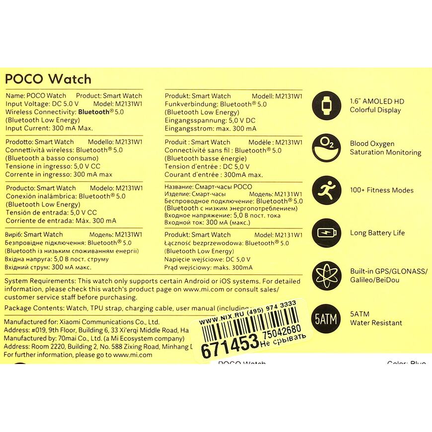 | Описание | Умные часы с AMOLED экраном, функцией вибрации для уведомлений, входящих вызовов и будильника для совместной работы со смартфоном по Bluetooth через приложение Mi Fitness. С помощью часов можно измерять шаги и пройденные километры, получать уведомления вибрацией, читать СМС и почту с экрана, измерять пульс и уровень кислорода в крови встроенным датчиком, разблокировать смартфон на Android, следить за качеством сна, смотреть погоду, использовать будильник и таймер. В часах также присутствуют GPS/ГЛОНАСС. Часы могут работать автономно до 14 дней. В комплекте силиконовый гипоалергенный ремешок. Более 100 различных оформлений экрана, 100+ видов активности, включая Бег на улице, беговая дорожка, на велосипеде, велотренажёр, произвольная активность, ходьба, трекинг, бег по пересечённой местности, бассейн, водоём, крикет, йога и т.п. |