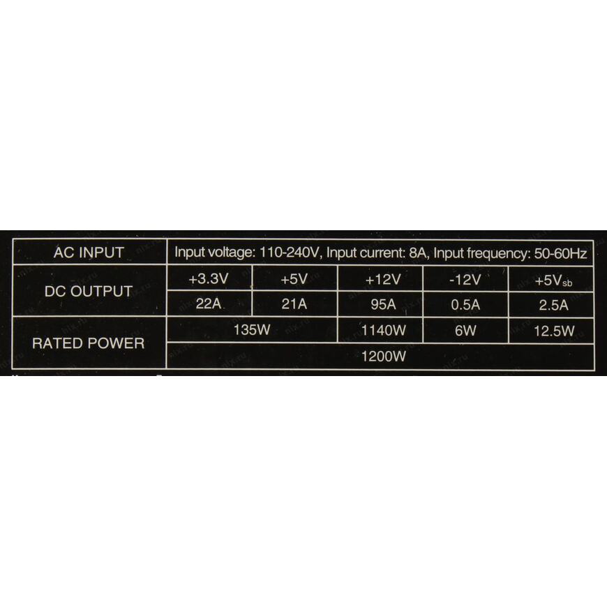 +3.3V - 22A, +5V - 21A, +12V - 95A, +5VSB - 2.5A, -12V - 0.5A