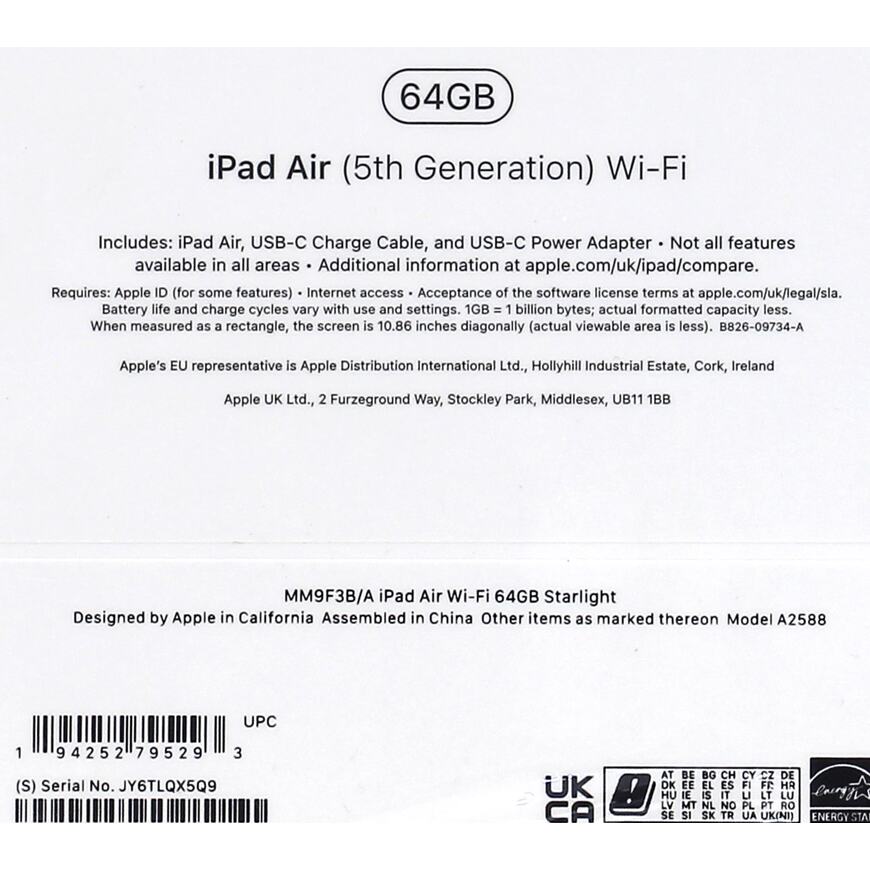 | Серия | iPad Air Wi-Fi |