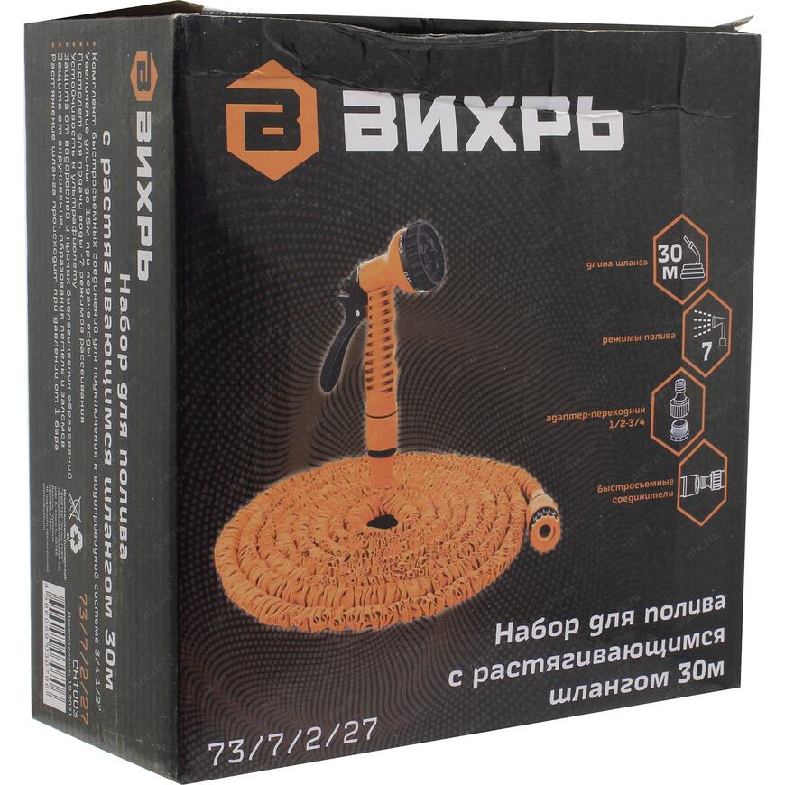 | Описание | Набор для полива с растягивающимся шлангом Вихрь 30 м 73/7/2/27 подходит для полива садовых растений.