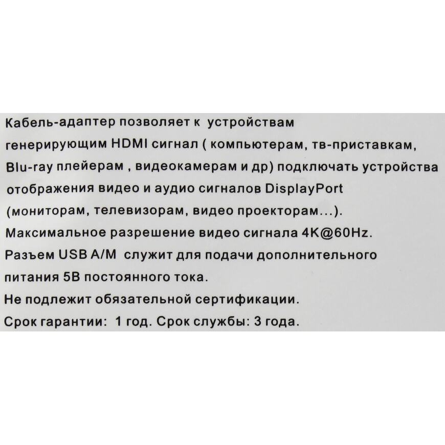 Кабель-переходник HDMI -> DisplayPort