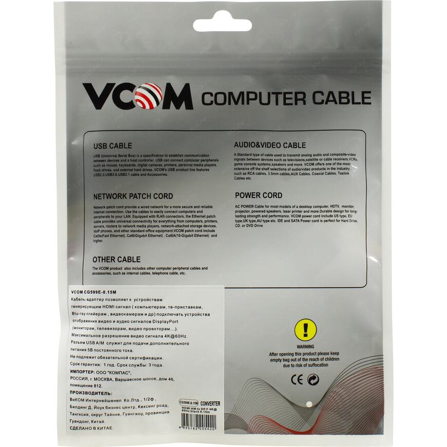 Кабель-переходник HDMI -> DisplayPort VCOM CG599E-0.15M
