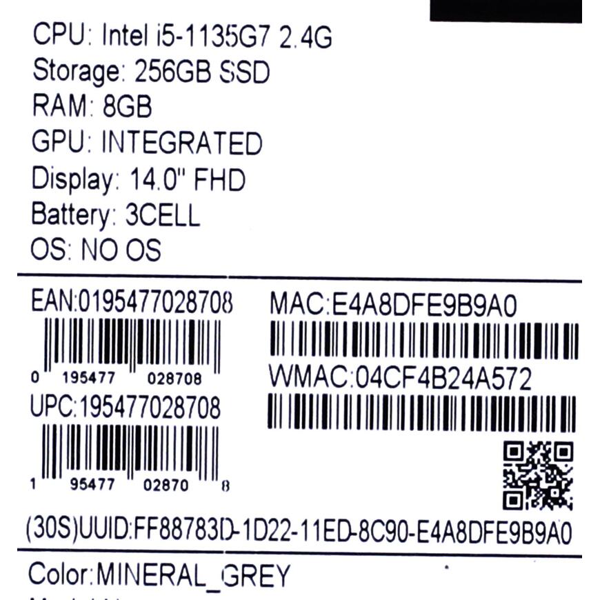 | Процессор ноутбука | Intel Core i5 1135G7 (2.4 - 4.2 ГГц, 4 ядра, 12 Вт) |