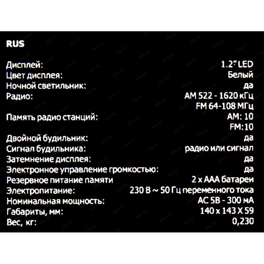 | Тип оборудования | Радиобудильник |
