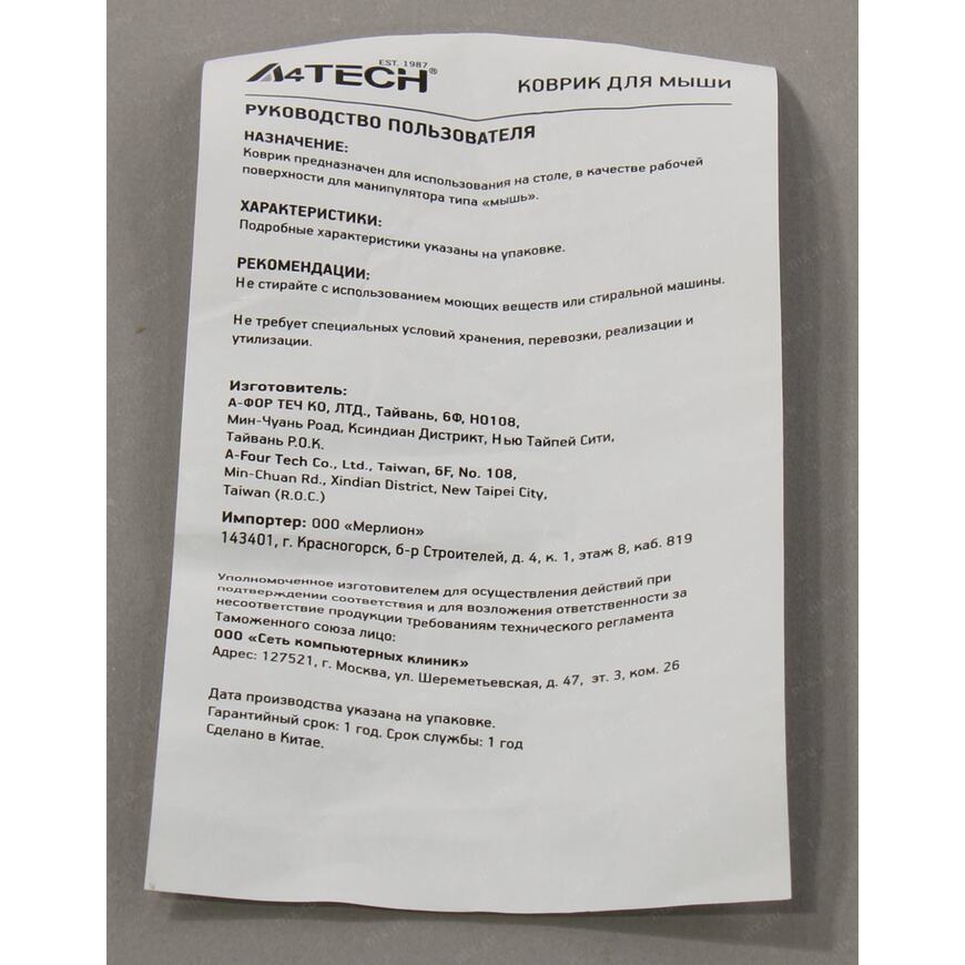 | Тип оборудования | Коврик для мыши |