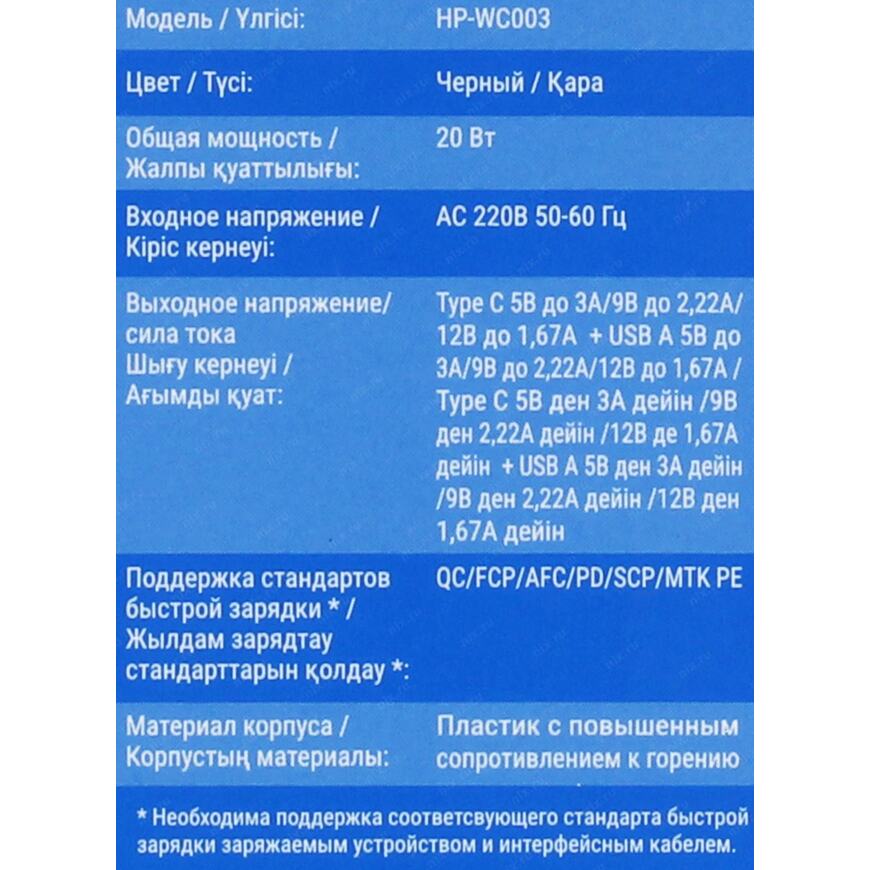 | Описание | Зарядное устройство с портом USB Type A и USB Type C с поддержкой USB Power Delivery мощностью до 20 Вт |