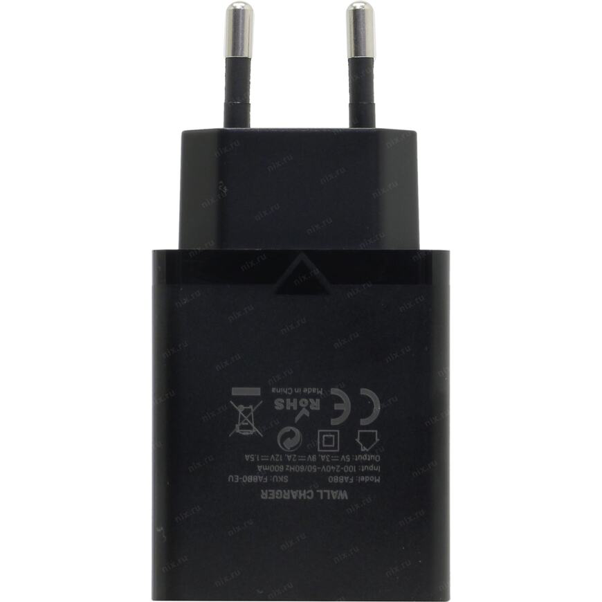 Зарядное устройство с портом USB Type A и поддержкой QC3.0 мощностью до 18 Вт.