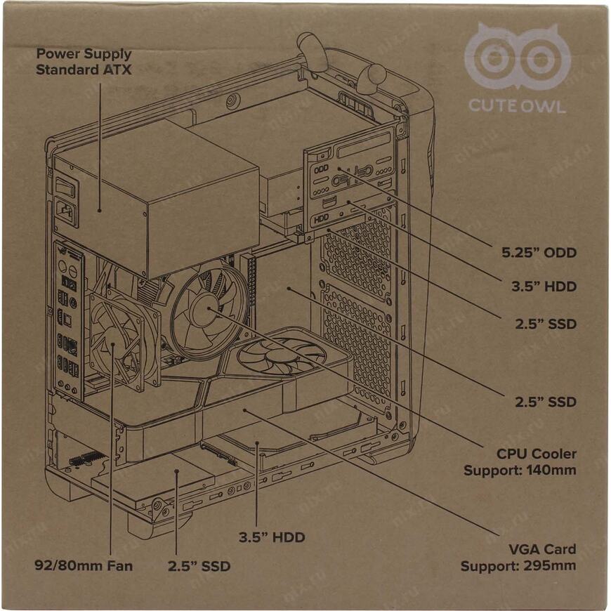 | Ключевые особенности | Корпус с уникальным дизайном, Скрытая укладка шлейфов, Быстрый доступ к опорной пластине кулера |
