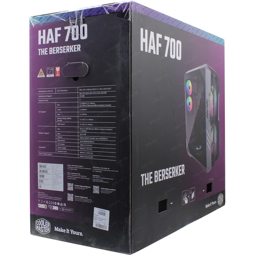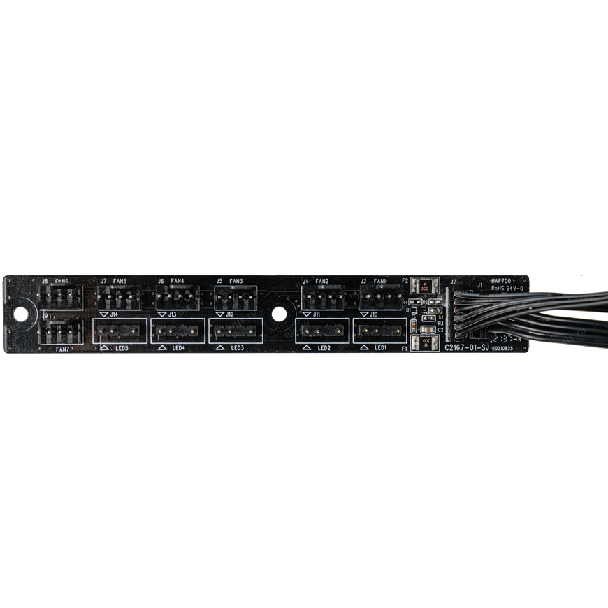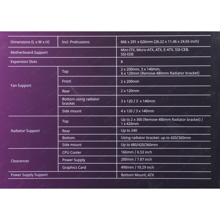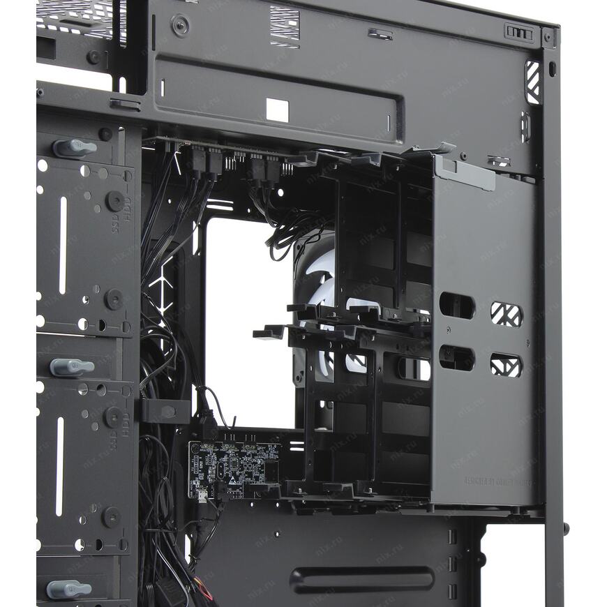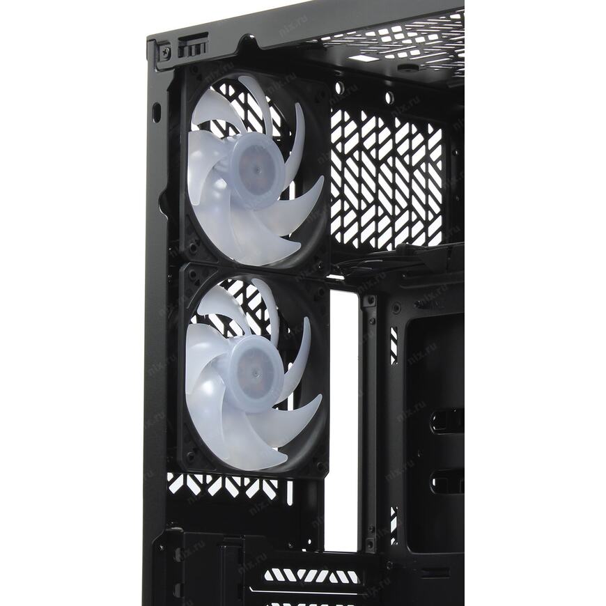 5 вентиляторов: 200 x 200, 120 x 120 мм (2x 200 мм на передней, 2x 120 мм на задней, 1x 120 мм на нижней панели). Вентиляторы SickleFlow 200 ARGB PWM + SickleFlow 120 ARGB PWM