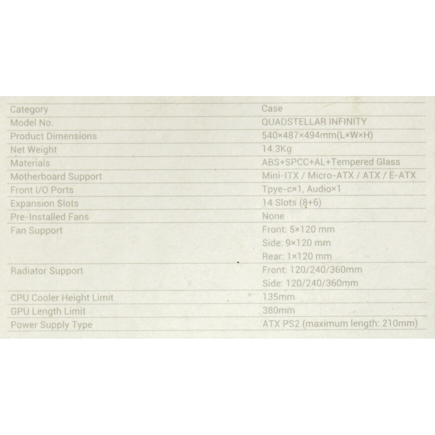 | Место для вентилятора на боковой стенке | 9 вентиляторов: 120 x 120 мм |