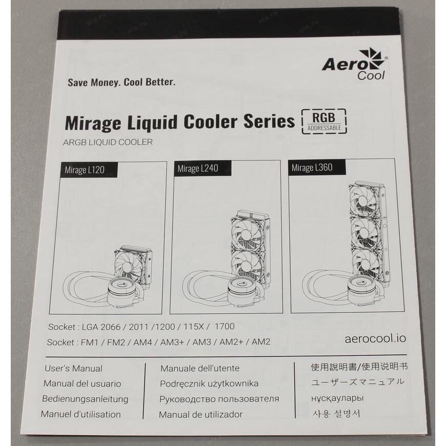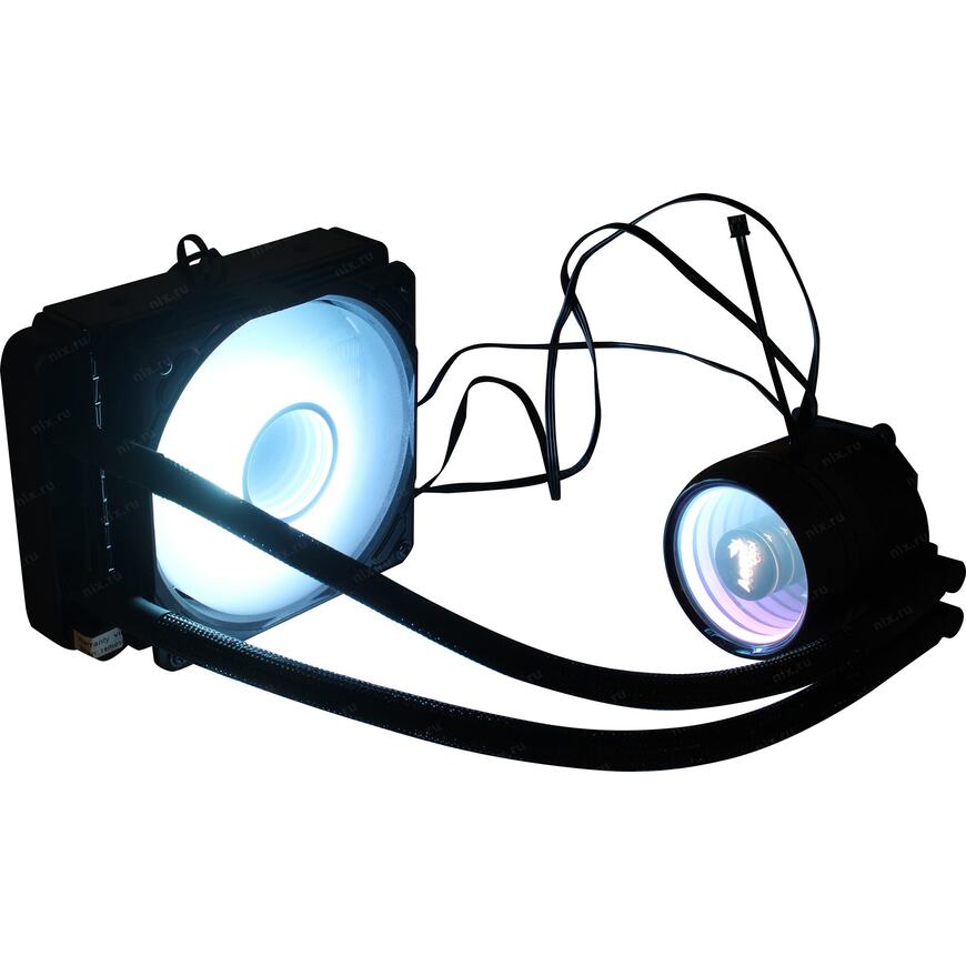 | Цвет подсветки | RGB, настраиваемая подсветка лопастей вентиляторов и водоблока. RGB-подсветка водоблока с зеркалом создаёт эффект “бесконечности" |