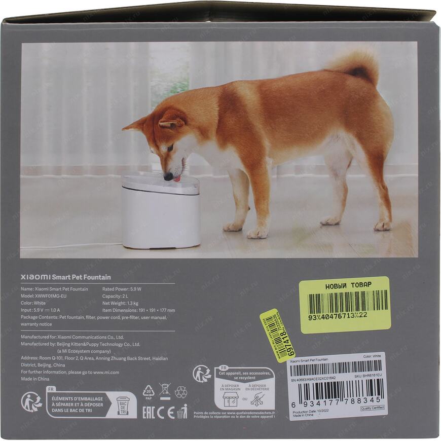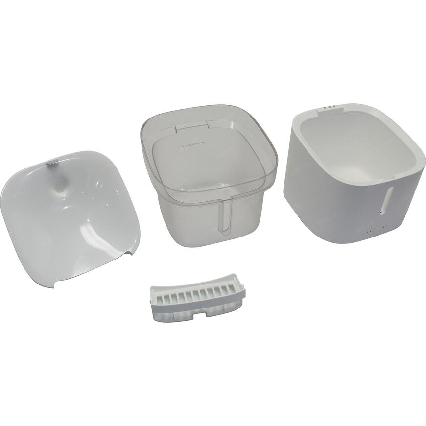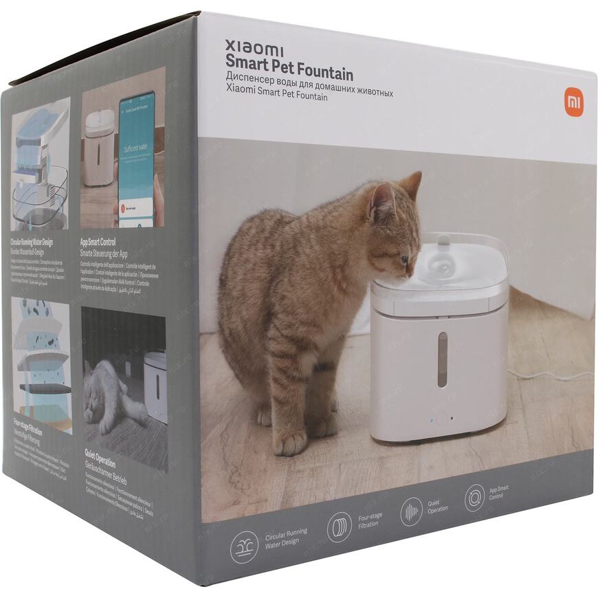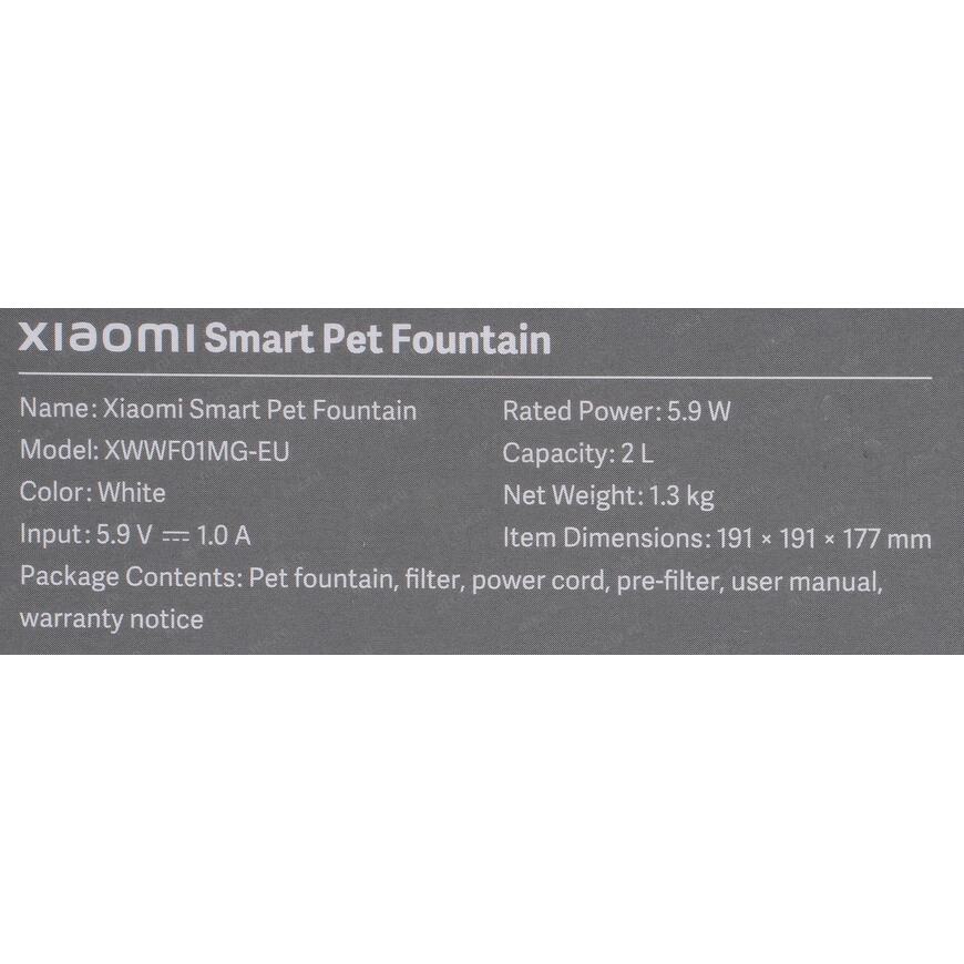 | Возможности | Автоматическая поилка для домашних животных, выполненная в виде фонтана. Встроенный сменный фильтр смягчает и очищает воду, а постоянная циркуляция не позволяет ей застаиваться и портиться. Устройством можно управлять по Wi-Fi с вашего смартфона или планшета в приложении Mi Home. Емкость 2 литра |