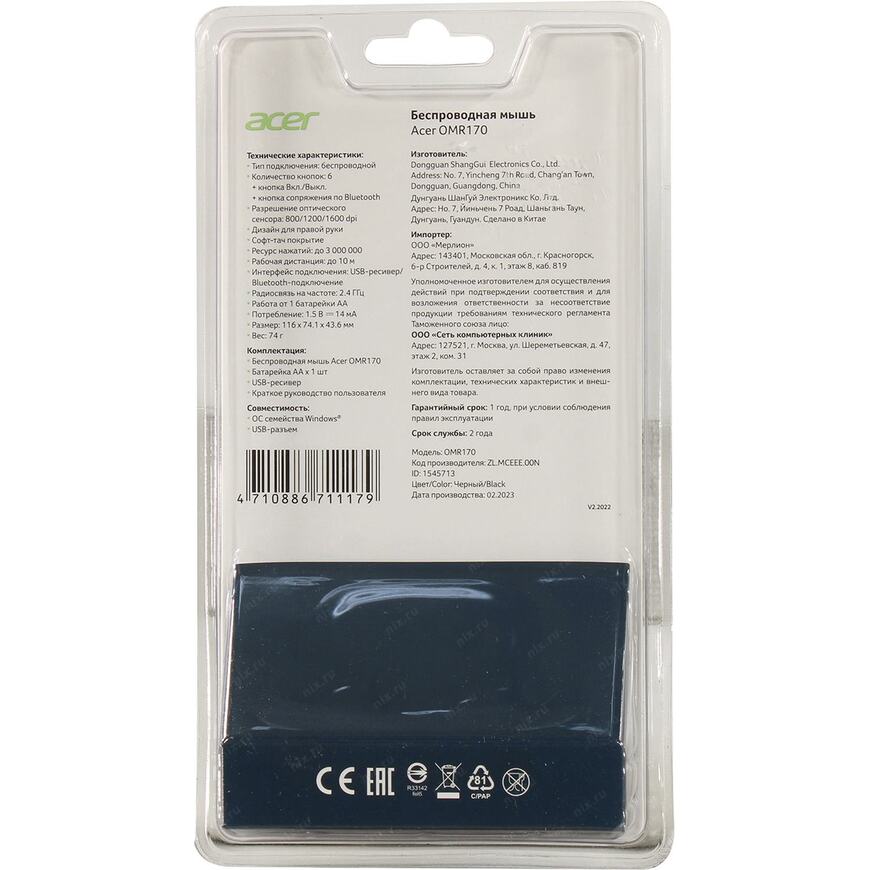 1 батарейка типа AA, USB-приемник