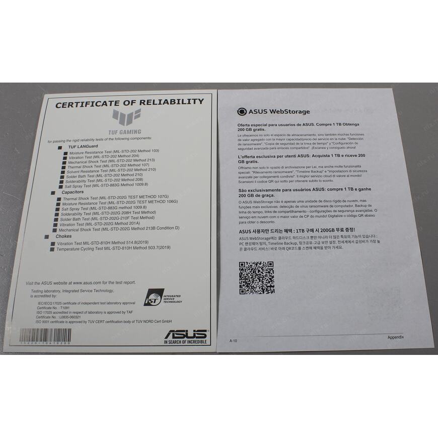 | Уникальные технологии ASUS | Aura Sync, DIGI+ VRM, Fan Xpert 4, Optimem II, ProCool, SafeSlot, TUF LANGuard |