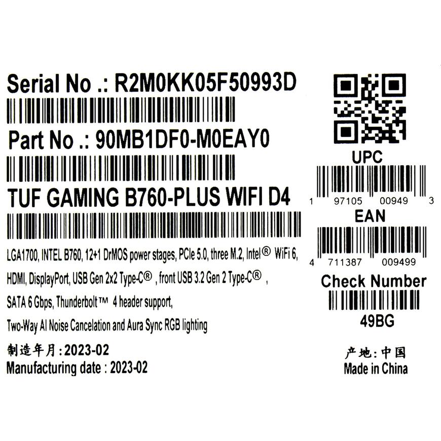 | Модель | TUF GAMING B760-PLUS WIFI D4 |