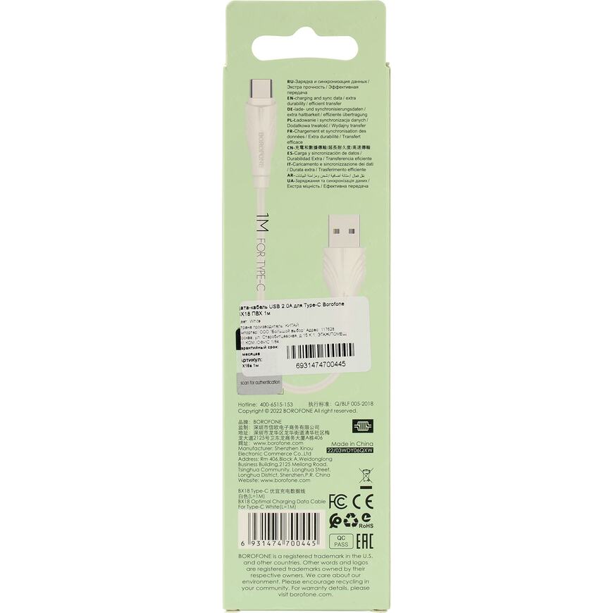 BOROFONE BX18 Type-C 1m White Белый 1 м. USB 2.0 A -> Type C
