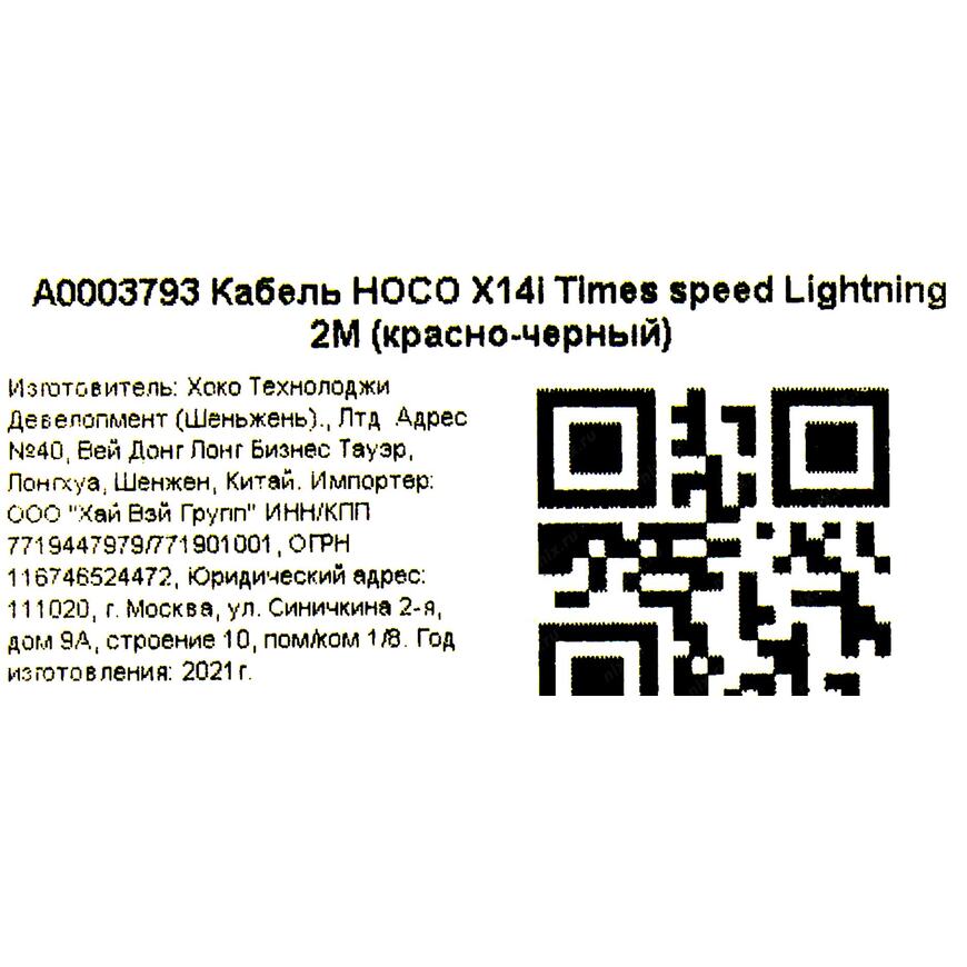 Кабель Lightning HOCO X14 Times speed кабель в оплетке 2 м.