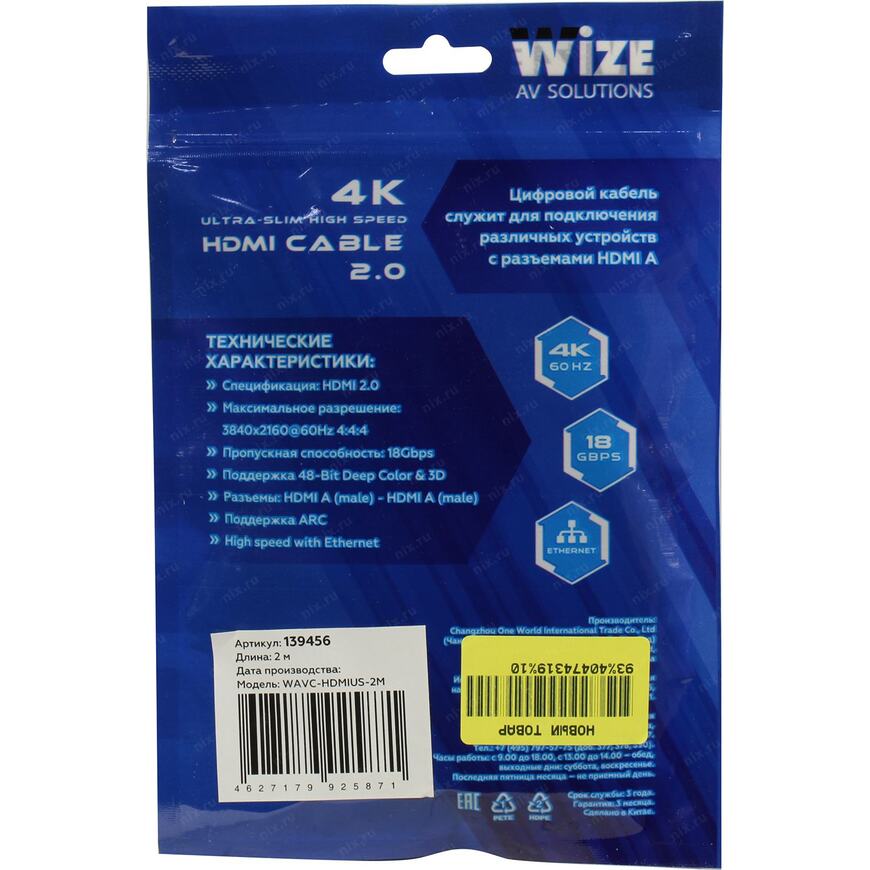Кабель ультратонкий высокоскоростной 4К HDMI