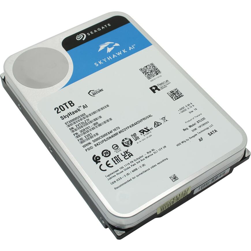 Жесткий диск Seagate SkyHawk AI ST20000VE002 20TB, 3.5", 7200 RPM, SATA-III, 512e, 256MB, для систем видеонаблюдения
