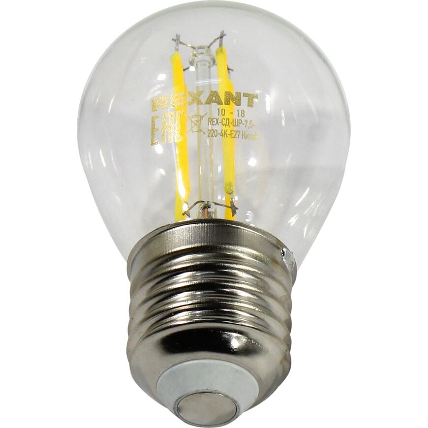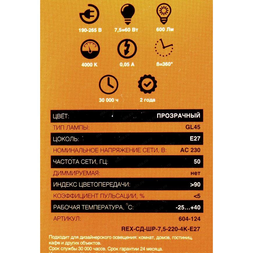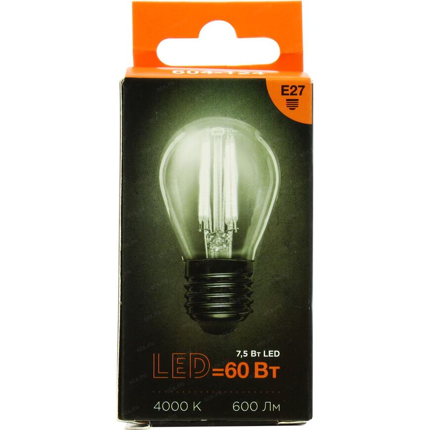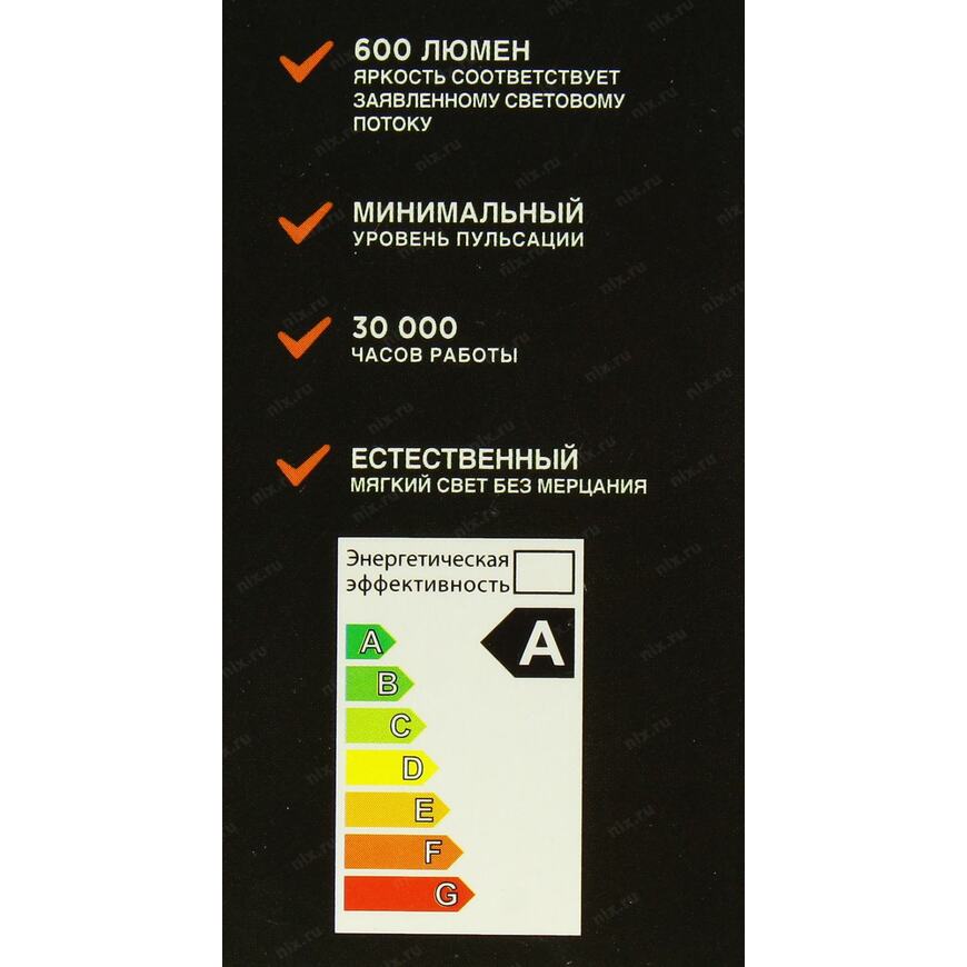 За счет распространения света во всех направлениях потребляет меньше электроэнергии при более высокой яркости. Также лампа равномерно распределяет температуру, благодаря чему не нагревается. Обладает мощностью в 7,5Вт и цоколем Е27. |