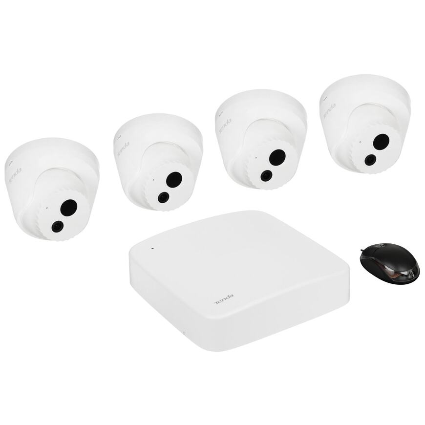 [Камера видеонаблюдения] TENDA K4P-4CR Комплект видеонаблюдения ( 4-канальный PoE видеорегистратор 4K UHD + 4 Турельные PoE видеокамеры 4MP UHD, объектив 4мм)