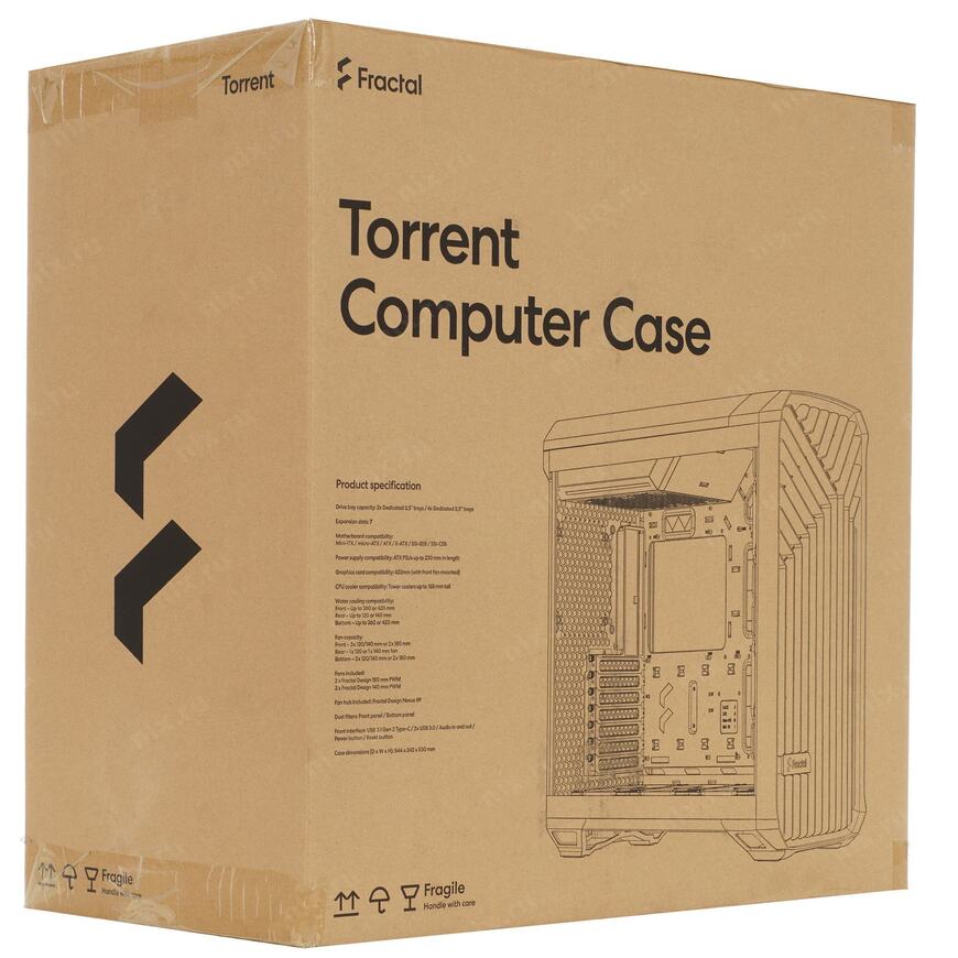 2 вентилятора: 180 x 180 мм (на передней панели)